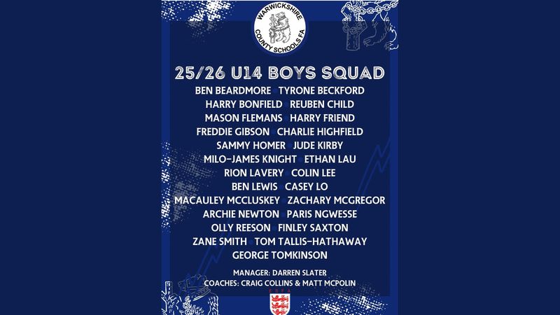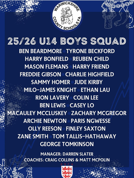 The 7 who all play for our U14 MJPL side have been selected for the U14 Warwickshire County Schools Squad