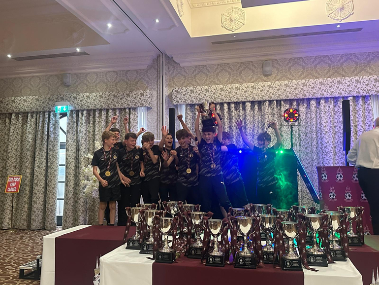 Racing Club Warwick Under 12 Whites were crowned Champions of the Coventry & Warwickshire Youth League Division B and celebrated their title win at the league's Awards Night, held at The Royal Court Hotel in Coventry.